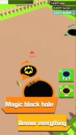 1、游戲采用獨特的黑洞吞噬玩法,讓玩家體驗到前所未有的競技快感。